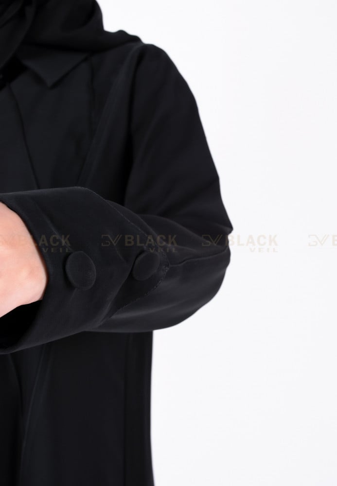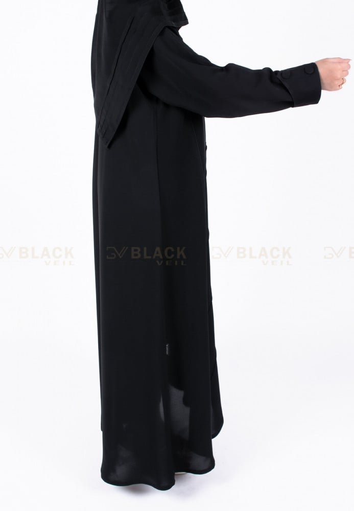 عباية كتف سحاب عليها كسرات من نفس القماش ،تصميم هادئ ومريح وعملي ،القماش حرير التميز خامة مذهلة وجودة عالية بنعومته وسوادء لونه لتنافسي من حولك بأناقتك الراقية