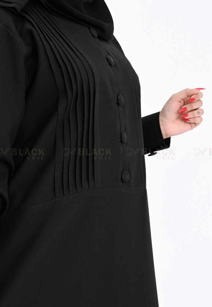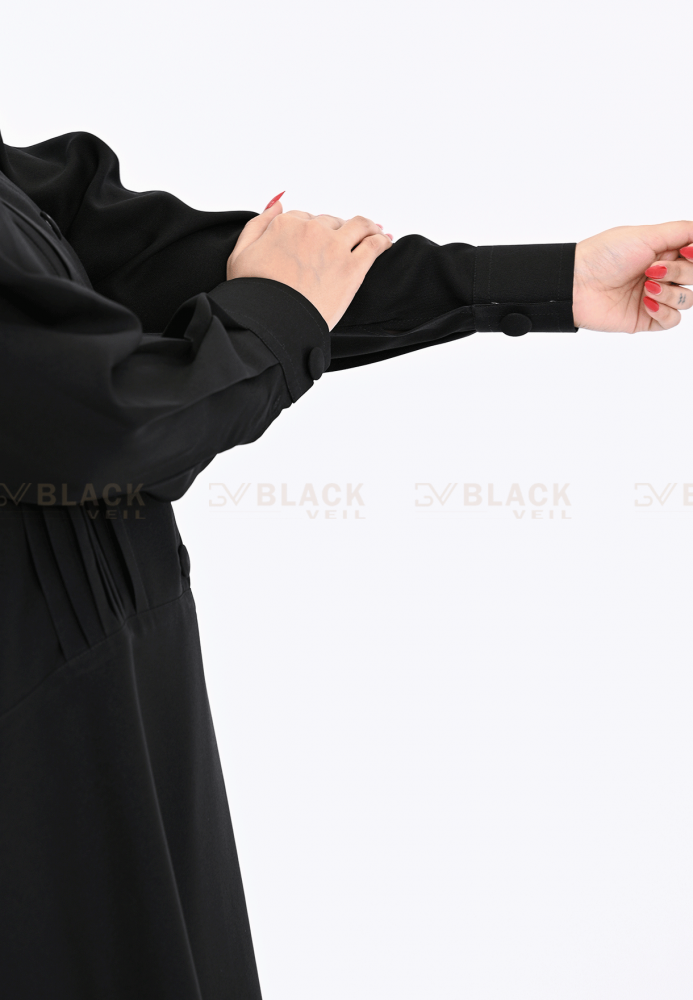تميزي بإطلالة راقية وناعمة بأحدث وأجود الأقمشة بتصاميم متطورة تقدم لك ماركة بلاك فيل عباءة كتف بلونها الأسود الجذاب يزينها كسرات متتابعة في الصدر إضافة إلى أزرار ملبسه بقماش أسود للجهة الأمامية والجهة الخلفية سادة تناسب ذوقك بكل تأكيد .